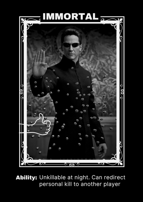 The Mafia strikes, the Detective investigates, the Doctor protects. Other roles act out their abilities.